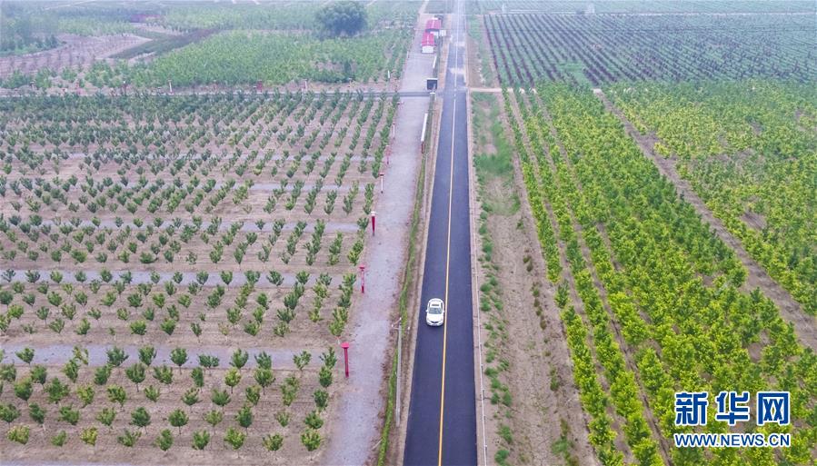 7月9日,车辆在文安县孙氏镇纪屯村公路上行驶。该条公路建成于2019年,投资400万元,有效推动当地种植业和旅游业的发展(无人机照片)。近年来,河北省文安县推进实施县乡公路改造、窄路基路面拓宽、村社道路硬化、危桥改造、安全生命防护等工程,不断完善农村物流网络,推动城乡交通基础设施互联互通。新华社记者李晓果摄