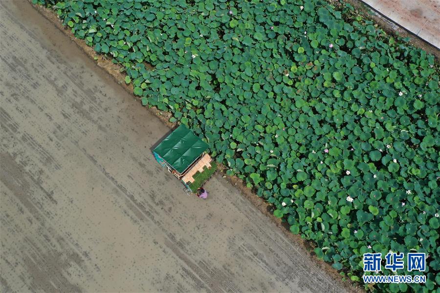7月11日,在湖南省衡阳市衡阳县台源镇台九村,村民准备使用插秧机插播晚稻秧苗(无人机照片)。近日,湖南各地农村陆续进入“双抢”季,农民紧抓农时,抢收抢种,力争粮食稳产丰收。新华社记者赵众志摄