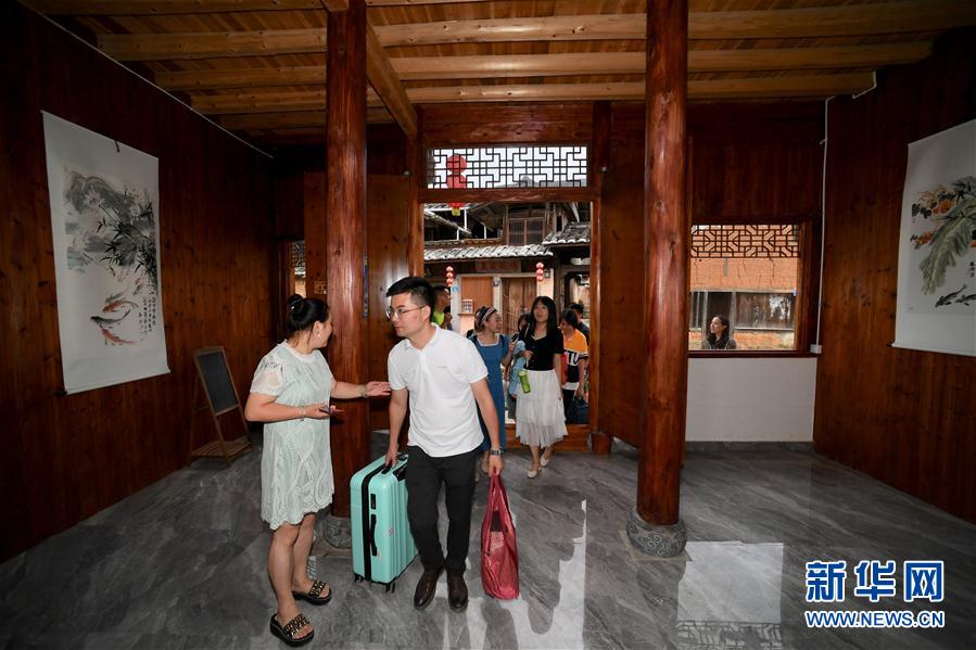 7月3日,来自福州的游客准备入住浦源村鲤鱼溪畔的一家民宿。新华社记者 姜克红 摄