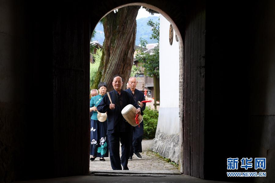 7月4日,浦源村民展示鱼祭习俗。鱼祭习俗是为死去的鲤鱼举行送葬仪式,是浦源村特有的习俗。新华社记者 姜克红 摄