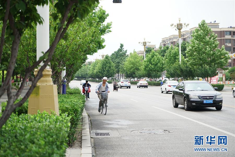 7月12日,市民在河北省唐山市古冶区城区街道上骑行。新华社记者 牟宇 摄