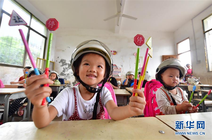7月11日,小朋友们在交通安全知识课上学习。当日,广西柳州市交警支队的民警来到融水苗族自治县大浪镇大新村红邓屯教学点,开展暑期交通安全教育活动,增强孩子们的安全出行意识。新华社记者黄孝邦摄