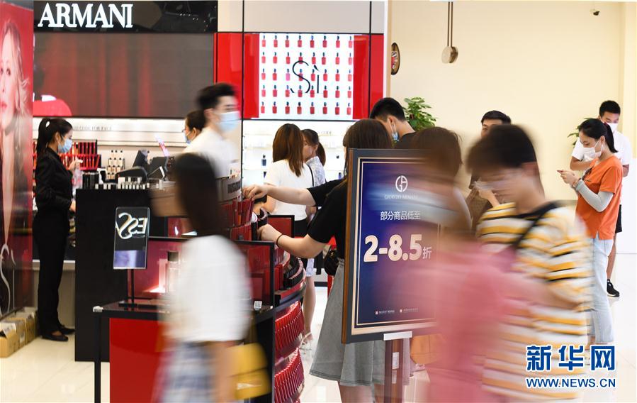 7月12日,游客在海口日月广场免税店购物。新华社记者 杨冠宇 摄