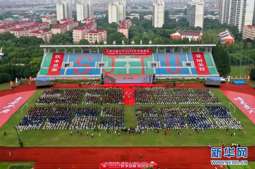 7月12日拍摄的上海交通大学2020年毕业典礼现场(无人机照片)。新华社记者 刘颖 摄