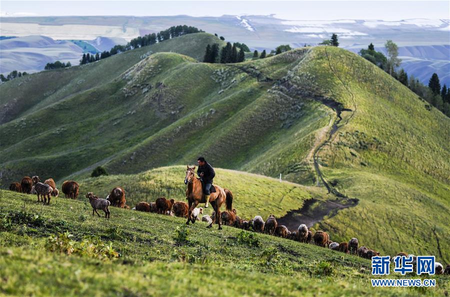 时值盛夏,新疆西天山水草丰美,夏牧场上牛羊成群。和煦的阳光普照草场,也照进牧民心中。