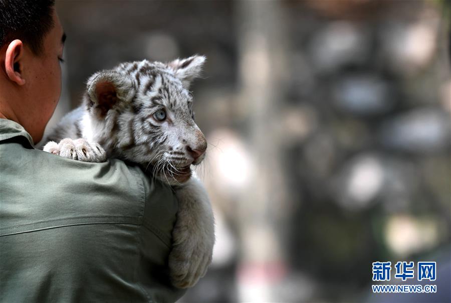 7月13日,工作人员将“妞妞”带回饲养室。河北石家庄市动物园的孟加拉白虎宝宝“妞妞”只有3个月大,由于虎妈妈经验不足,“妞妞”一出生便由动物园工作人员按科学方法人工饲养。目前,在饲养员的精心照料下,“妞妞”正在茁壮成长。新华社记者 王晓 摄