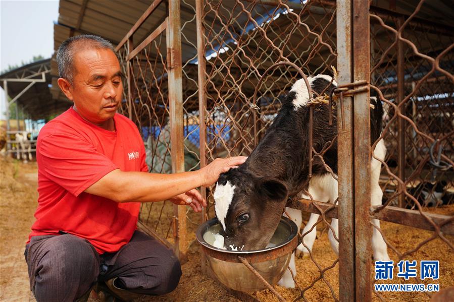 7月11日,河北省清河县永兴奶牛养殖场的工人在给奶牛喂食。近年来,河北省清河县将扶贫工作与现代农业结合,以龙头企业为引领,成立合作社,鼓励贫困户利用扶贫资金入股奶牛养殖场,帮助他们常年获得稳定收益。同时,贫困户农闲时还可到产业园区打工,既拿股金,又挣薪金,实现“造血式”脱贫。新华社记者 牟宇 摄