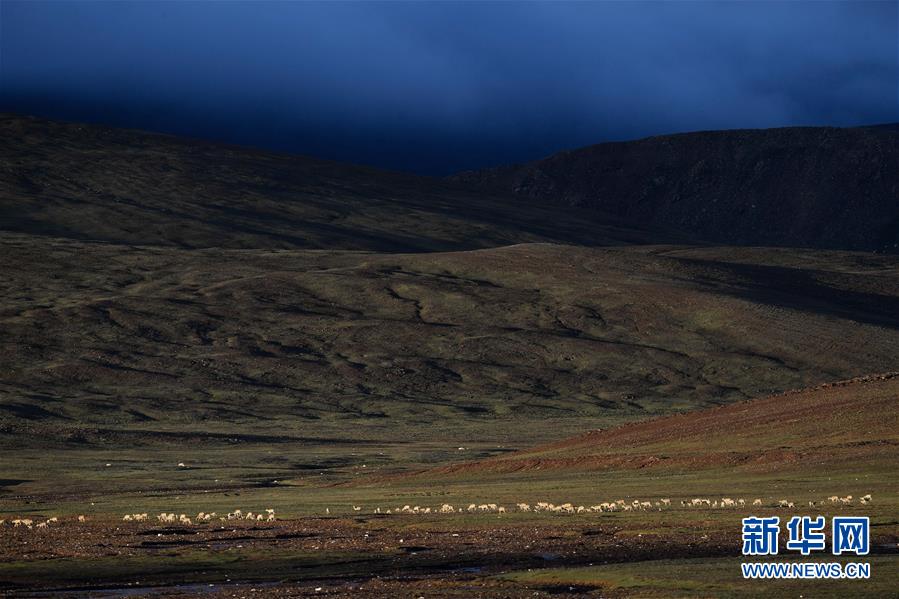 7月7日在可可西里卓乃湖区域拍摄的一群藏羚羊。目前正值藏羚羊产仔季。来自青海三江源、新疆阿尔金山、西藏羌塘等地的藏羚羊来到位于青海省可可西里腹地、被誉为“藏羚羊大产房”的卓乃湖区域产仔。新华社记者 张龙 摄
