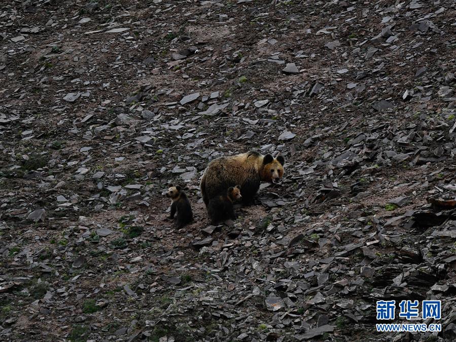 7月7日在可可西里卓乃湖区域拍摄的藏羚羊天敌——棕熊。目前正值藏羚羊产仔季。来自青海三江源、新疆阿尔金山、西藏羌塘等地的藏羚羊来到位于青海省可可西里腹地、被誉为“藏羚羊大产房”的卓乃湖区域产仔。新华社记者 张龙 摄