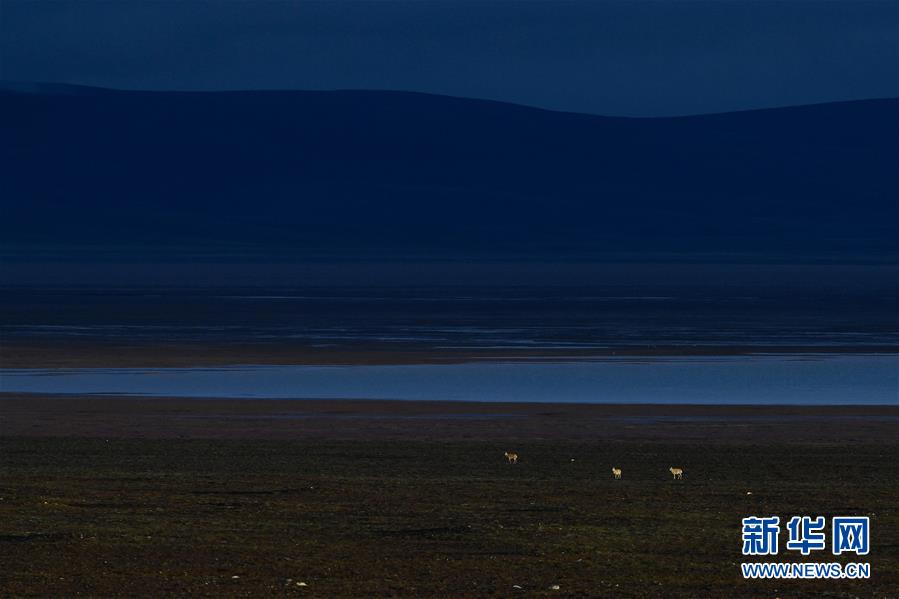 7月7日在可可西里卓乃湖区域拍摄的藏羚羊。目前正值藏羚羊产仔季。来自青海三江源、新疆阿尔金山、西藏羌塘等地的藏羚羊来到位于青海省可可西里腹地、被誉为“藏羚羊大产房”的卓乃湖区域产仔。新华社记者 张龙 摄