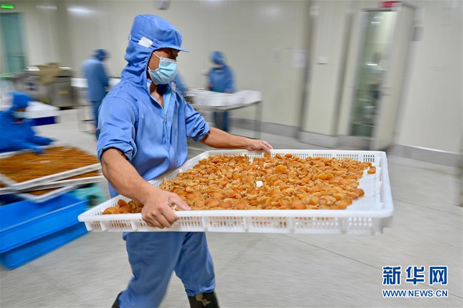 7月14日,福建省连江县一家鲍鱼加工企业,工人在搬运鲍鱼产品。新华社记者 姜克红 摄