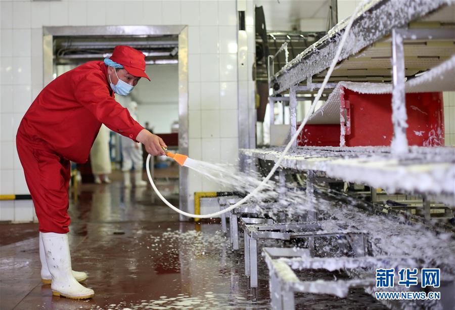 7月14日,北京二商肉类食品集团有限公司员工对肉类分割流水线进行清洗消毒。北京二商肉类食品集团有限公司是保障北京肉类市场供应的主要企业之一。新冠肺炎疫情以来,企业严格实施北京市、农业农村部和中国肉类协会的防疫要求,对进入厂区的人员、车辆以及原料采购、屠宰分割、产品加工、贮藏运输、废弃物收集及污水处理等生产环节严格防疫,强调源头把关彻底消毒。目前,集团公司下属多家生猪屠宰加工基地正常运营,保质保量供应北京市场需求。新华社记者 李欣 摄