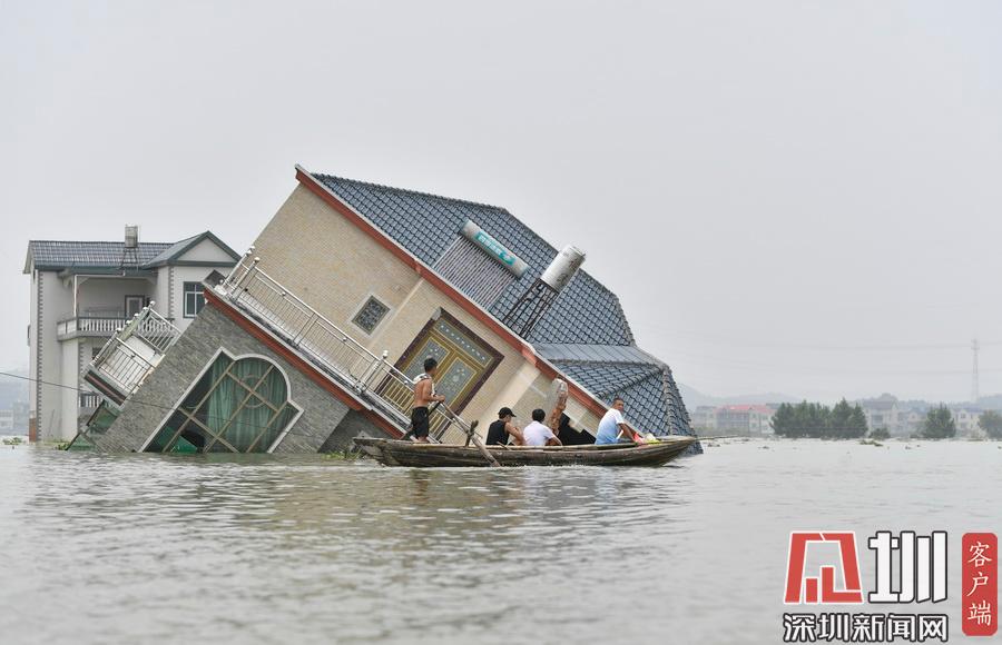 2020年7月15日,江西省鄱阳县油墩街镇同兴村,村庄受到洪水围困,大部分村民已经被转移出去,仍有少数村民选择留守家中积极自救继续生活。7月8日晚,鄱阳县油墩街镇西江因特大暴雨出现漫堤决口,5个行政村被洪水围困,数万名群众被及时疏散转移。同兴村村民张瑶康回忆起了当时的场景,“水一下子就涌进来,等缓过神来赶紧向二楼转移一楼的物品。洪水来时只从一楼抢到了一些轻便易拿的东西,冰箱、洗衣机之类的大物件,至今仍浸泡在一楼水中。”15日,记者跟随张瑶康乘船回家,抵达后看到,一楼淹没在水中,一个绑在二楼护栏的木梯成为进出“家门”的唯一通道。“每天划船去村里运送水和食物,家里有煤气罐和灶台。因为80多岁的老母亲行动不便,我们选择留守家中。”“虽然对岸就有安置点,但还是更愿待在自己家里,一来是不愿意给政府添麻烦,二来能每天看着自己的房子心里踏实。”同兴村村民张长来夫妇带着刚刚领到的大米、方便面、饮用水乘船回到家中。记者在现场看到,随着各方救援力量和物资的汇聚,被洪水围困的村民生活虽有不便,但生活仍在继续。“房子不倒,家就在,我们要积极面对,早日重建家园。”张瑶康告诉记者。