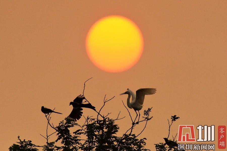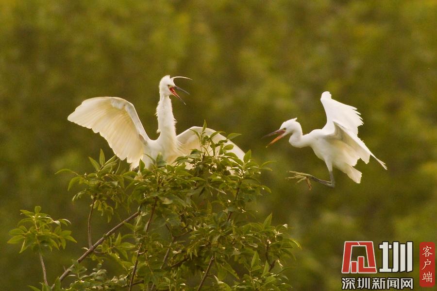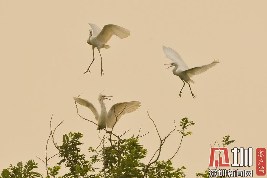 山东青岛“鹭舞”林间 宛如一幅写意山水画