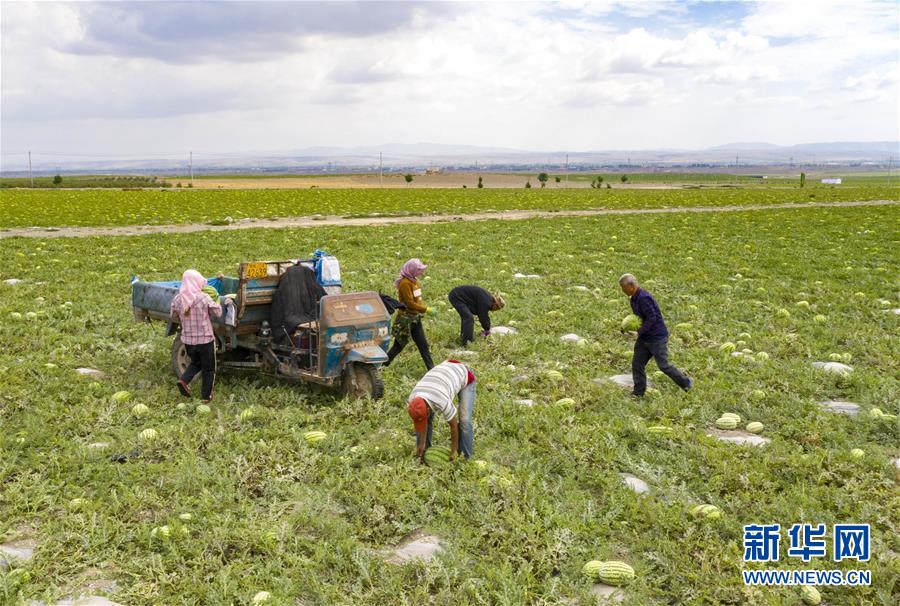 7月16日,在宁夏中卫市香山乡硒砂瓜万亩示范基地,瓜农在采收硒砂瓜。近日,宁夏中卫市迎来硒砂瓜丰收季。硒砂瓜是中卫市的特色农产品,近年来,当地采取技术创新、规模化种植、休耕轮作等多项举措,让硒砂瓜种植成为当地农民增收致富的重要产业。据了解,今年中卫市硒砂瓜种植面积为69.7万亩。新华社记者杨植森摄
