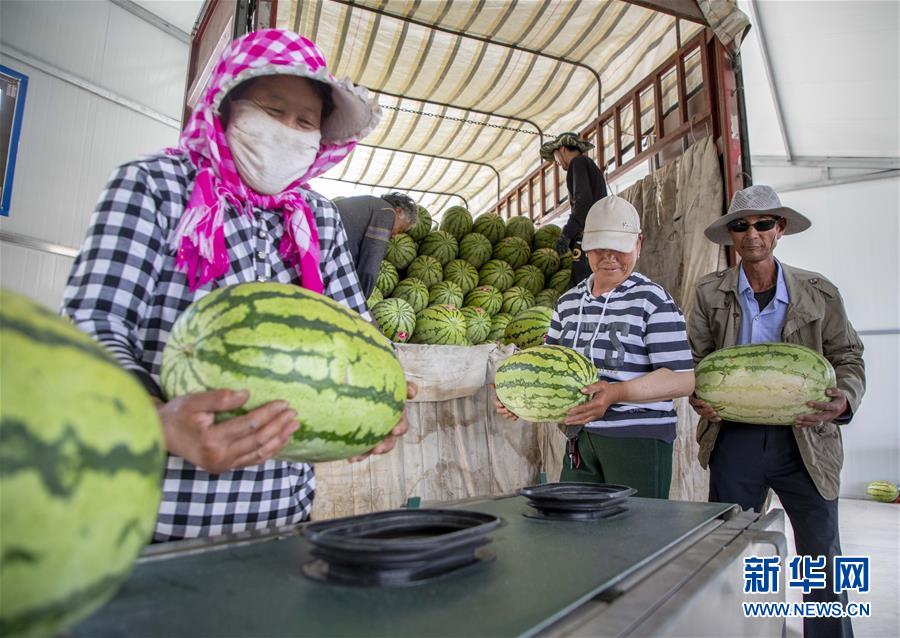 7月16日,在宁夏中卫市香山乡硒砂瓜自动分选中心,瓜农将硒砂瓜放到自动筛选设备传送带上。近日,宁夏中卫市迎来硒砂瓜丰收季。硒砂瓜是中卫市的特色农产品,近年来,当地采取技术创新、规模化种植、休耕轮作等多项举措,让硒砂瓜种植成为当地农民增收致富的重要产业。据了解,今年中卫市硒砂瓜种植面积为69.7万亩。新华社记者杨植森摄