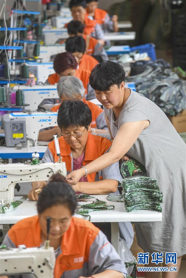 7月16日,在河北省深州市高古庄镇凤凰池村扶贫车间,马京娜指导车间工人加工帽子。马京娜是河北省深州市高古庄镇凤凰池村的致富能手。在市、乡、村各级部门的大力支持下,马京娜创办扶贫车间,为建档立卡贫困户设立岗位,带领贫困户脱贫增收。目前,马京娜的扶贫车间提供就业岗位30多个。新华社记者李晓果摄