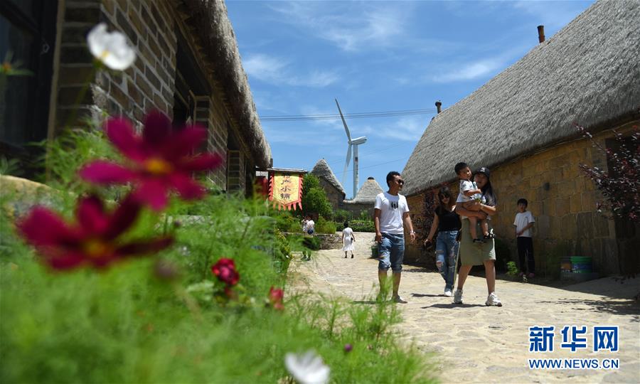 7月17日,游客在以传统海草民居闻名的山东荣成东楮岛村观光。近年来,山东省荣成市重点发展特色海洋旅游产业,打造众多国家级海洋牧场,保留修复传统海草民居,吸引游客前来观光体验。如今特色海洋旅游已逐渐成为荣成经济发展新的增长点。新华社记者王凯摄