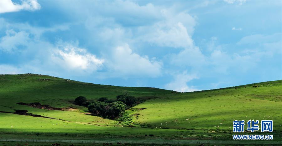 这是内蒙古锡林郭勒盟正镶白旗境内的草原景色(7月18日摄)。连日来,内蒙古锡林郭勒盟迎来多次降雨,境内广袤的草原经过雨水的滋润,焕发出勃勃生机。新华社记者连振摄