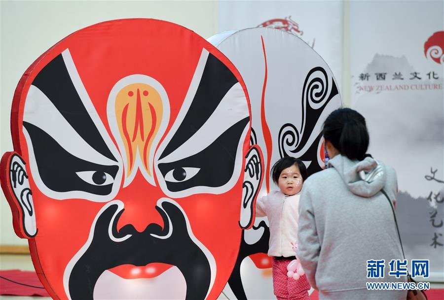 7月19日,在新西兰奥克兰举行的毛利中国多元文化节上,一名儿童与京剧脸谱装饰合影。当日,由新西兰奥克兰地区议会、华人社团新西兰文化艺术基金会等机构共同主办的毛利中国多元文化节在奥克兰举办,数百人参加。新西兰于6月9日下调新冠疫情防控响应级别至一级。这意味着社交距离和聚集人数等限制都已取消,社会和经济生活基本恢复正常。新华社记者郭磊摄