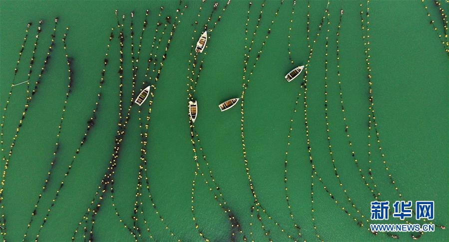 7月15日拍摄的山东省荣成市一处国家级海洋牧场(无人机照片)。新华社记者王凯摄