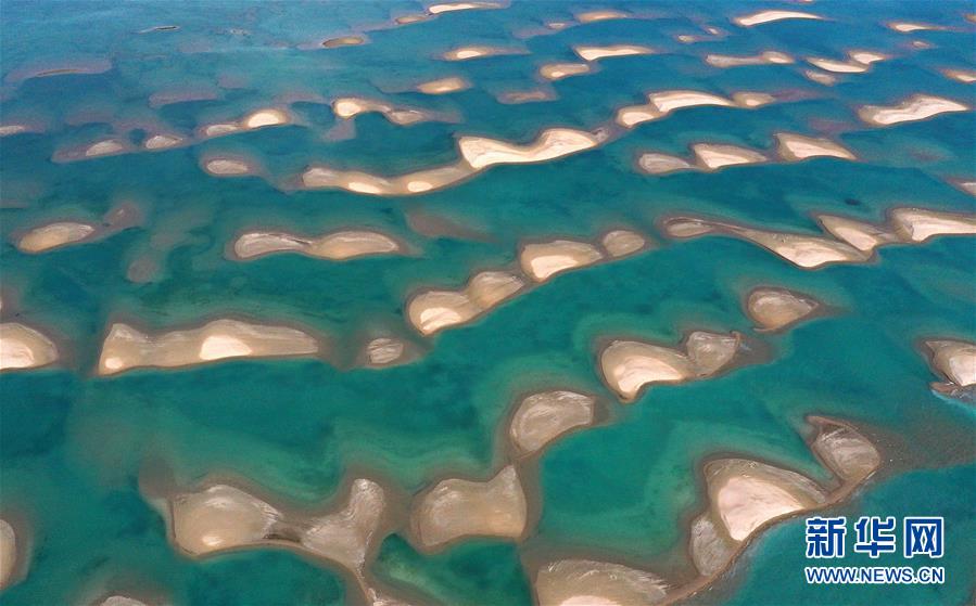 7月10日拍摄的青海湖鸟岛一角(无人机照片)。新华社记者张宏祥摄