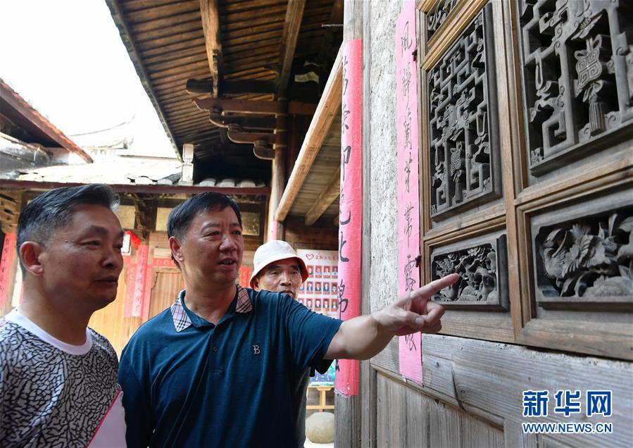 7月19日,游客在永泰县同安镇爱荆庄里听永泰县庄寨民俗专家鲍道文(左二)现场讲解。近年来,福建省福州市永泰县重视古庄寨保护与利用工作,遵循“保护为主、修旧如旧”原则,加大修缮保护力度,通过对古庄寨古村落等物质载体进行活化利用,打造庄寨+旅游、庄寨+研学等产业发展模式,带动乡村振兴。永泰县地处福州西南部,拥有保存较好的古庄寨152座,面积1000平方米以上、年代100年以上98座。新华社记者魏培全摄