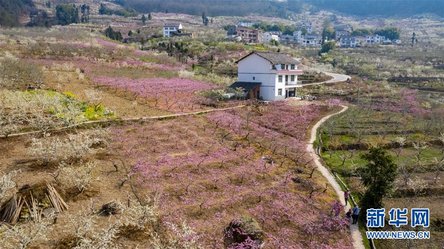 这是3月26日拍摄的四川省汉源县双溪乡申沟村万亩桃园一角(无人机照片)。新华社记者王曦摄