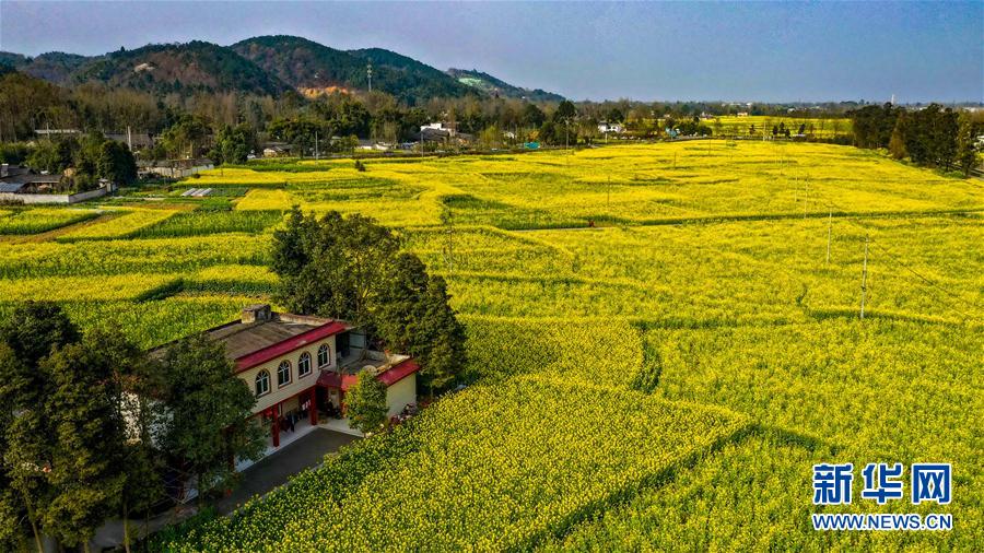 这是2月25日在四川省崇州市重庆路拍摄的油菜花田(无人机照片)。新华社记者王曦摄
