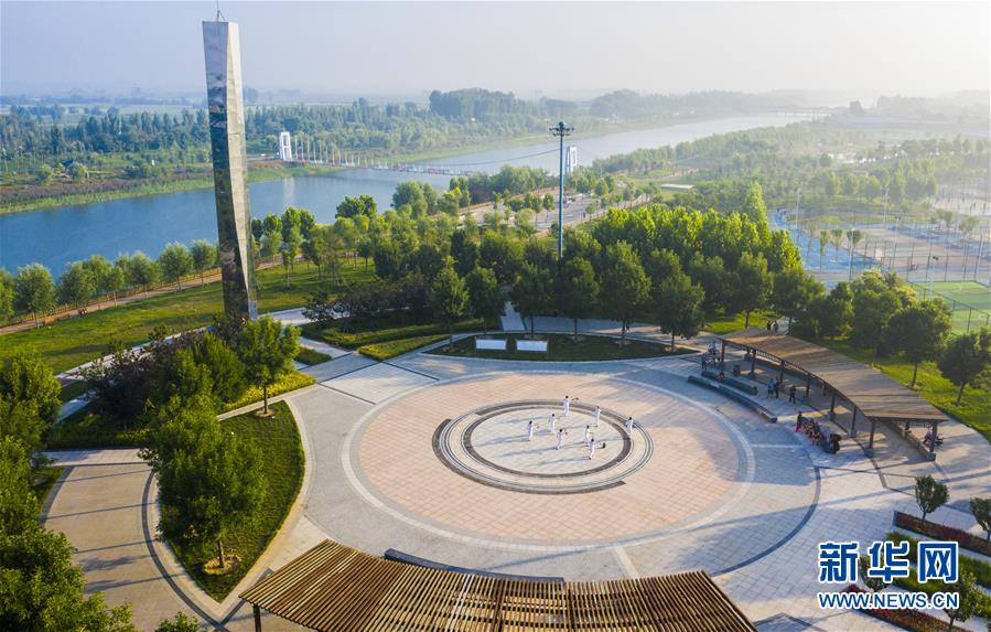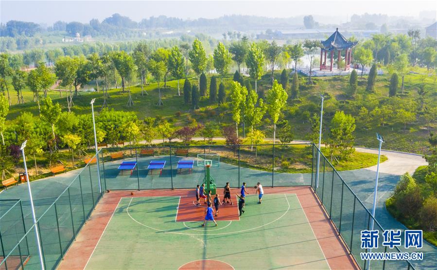 7月20日,市民在河北省武邑县观津公园内健身(无人机照片)。新华社记者李晓果摄