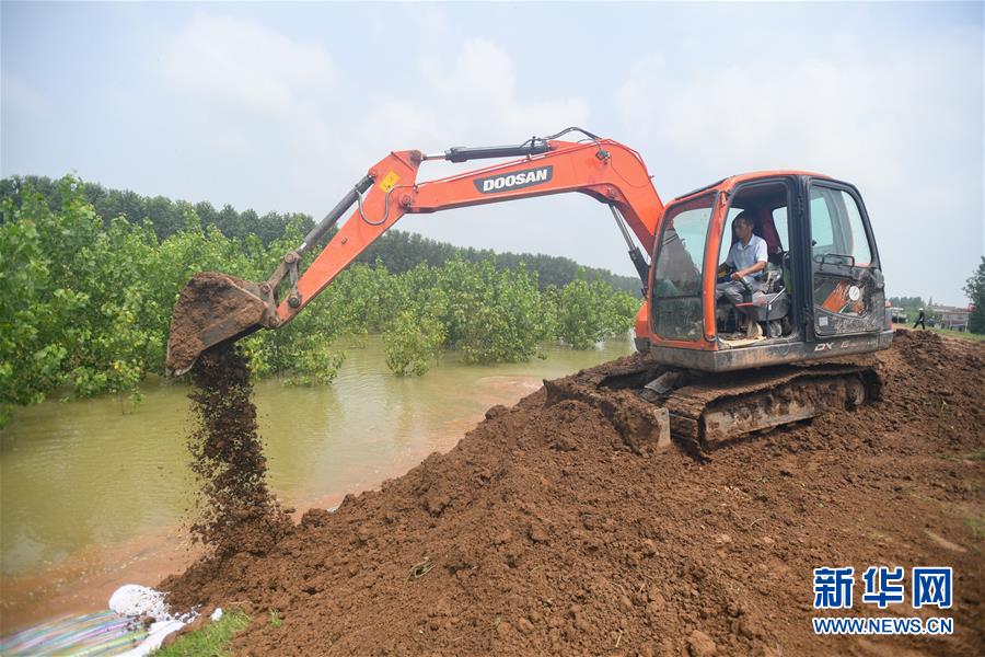 7月20日,在永固垸西线防洪大堤,工作人员处置渗漏险情。新华社记者陈泽国摄