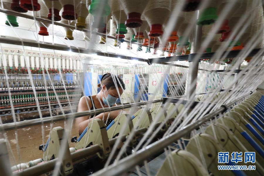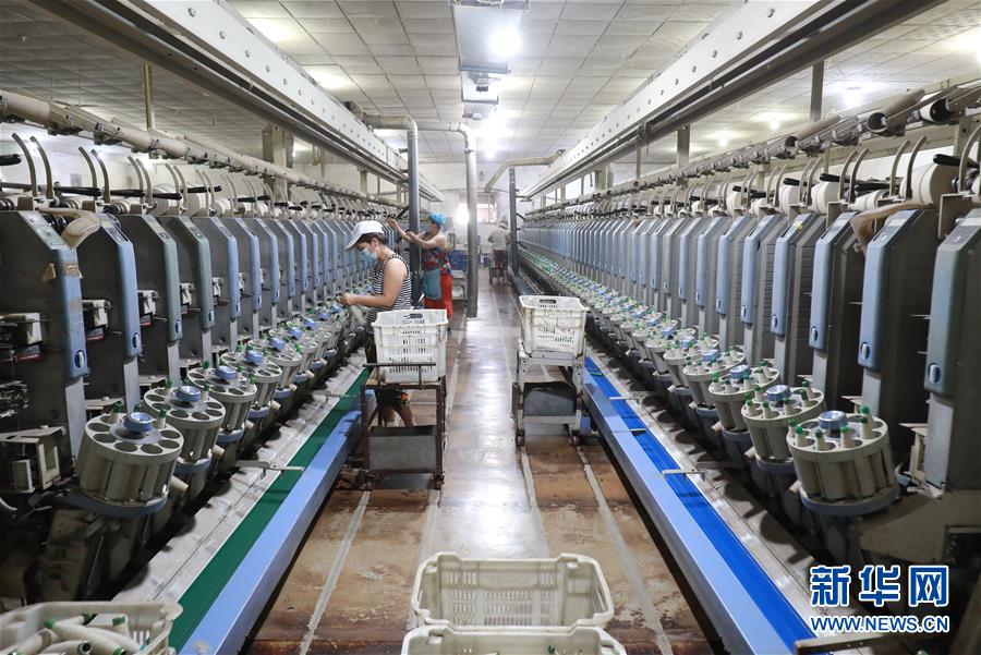7月20日,工人在滦南县长凝镇的一家纺织厂生产车间里工作。近年来,河北省滦南县大力发展村边民营企业,引导企业在乡镇村边建厂,带动当地3万多名农村群众在村边就近就业,实现稳步增收。新华社记者杨世尧摄