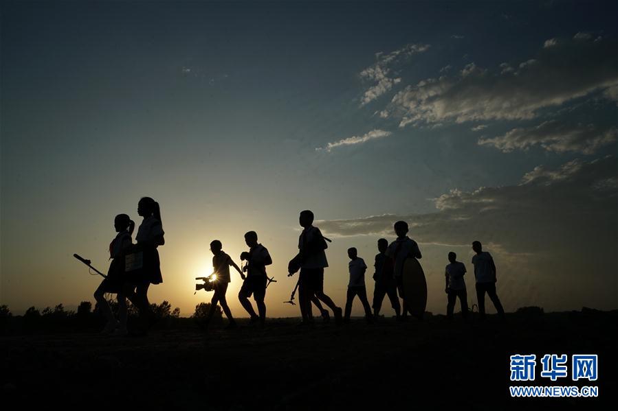 2019年8月15日,《向阳而生》摄制组完成一天的拍摄,行走在返回学校的途中。新华社记者牟宇摄