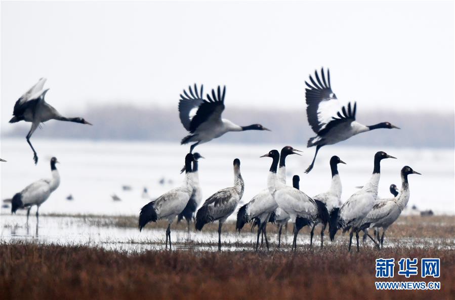 在草海国家级自然保护区越冬的黑颈鹤(2019年12月11日摄)。新华社记者杨文斌摄