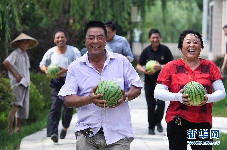 7月22日,庙兜村的村民们在进行运西瓜比赛。当日是大暑节气,浙江省湖州市吴兴区织里镇庙兜村举行了趣味“赛西瓜”比赛,迎接这个“火热”的节气。庙兜村种植有500多亩西瓜,目前正值西瓜丰收的时节,村民们用“赛西瓜”的形式,感受丰收的喜悦。新华社记者徐昱摄