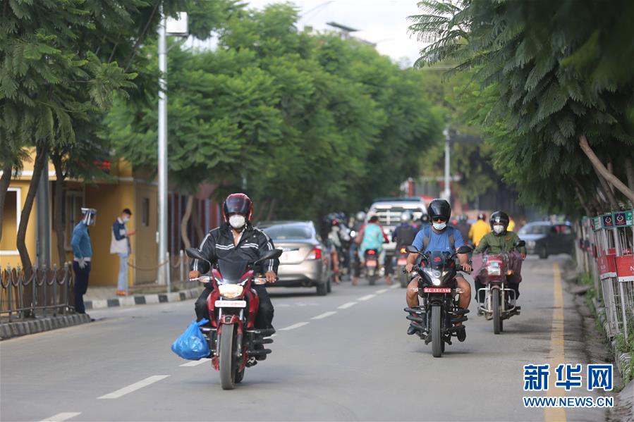 7月22日,人们骑摩托车行驶在尼泊尔加德满都街头。尼泊尔政府21日宣布,自22日零时起结束因新冠疫情而实施的全国封锁措施。目前,尼境内新冠疫情出现放缓迹象。据尼卫生与人口部21日公布的最新数据,过去24小时,全国新增确诊病例150例,确诊病例总数达17994例。为防范新冠疫情蔓延,尼政府从3月24日开始实施全国封锁。新华社记者周盛平摄