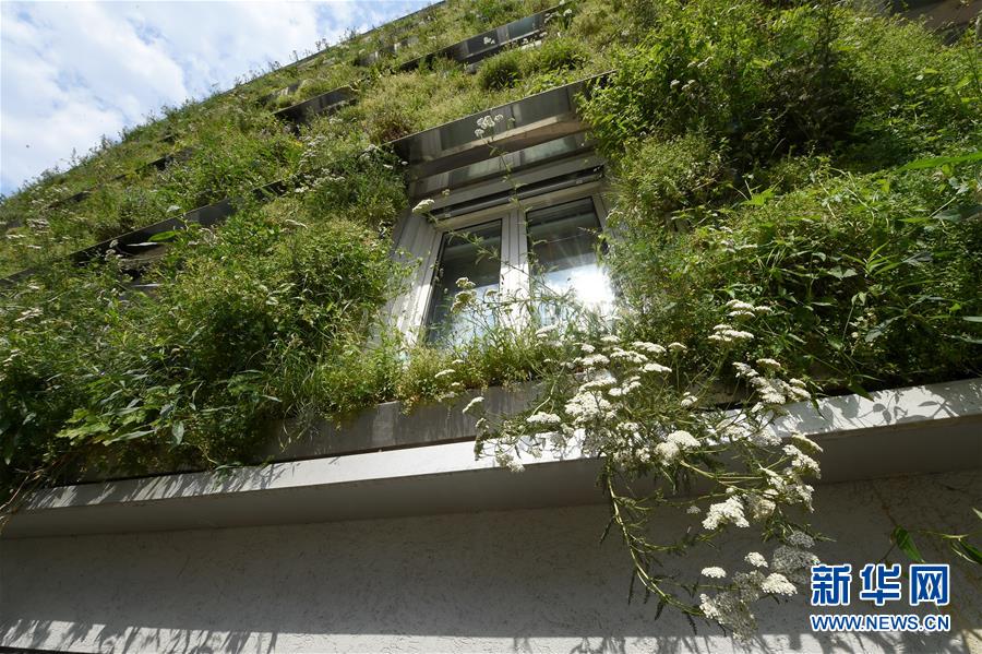 这是7月22日拍摄的奥地利维也纳市政管理局废物处理办公总部(MA48)外部一隅。奥地利首都维也纳的市政管理局废物处理办公总部的外墙被种植的绿色植物覆盖,成为了维也纳市建设绿色城市、节能减排的“示例楼”。据介绍,这个外墙项目建立于2010年,每年在夏季为该建筑自然降温、增加湿度,从而减少空调的使用,并可吸收二氧化碳。维也纳市政府提倡市内建筑建设绿色外墙,并提供资金支持。新华社记者郭晨摄