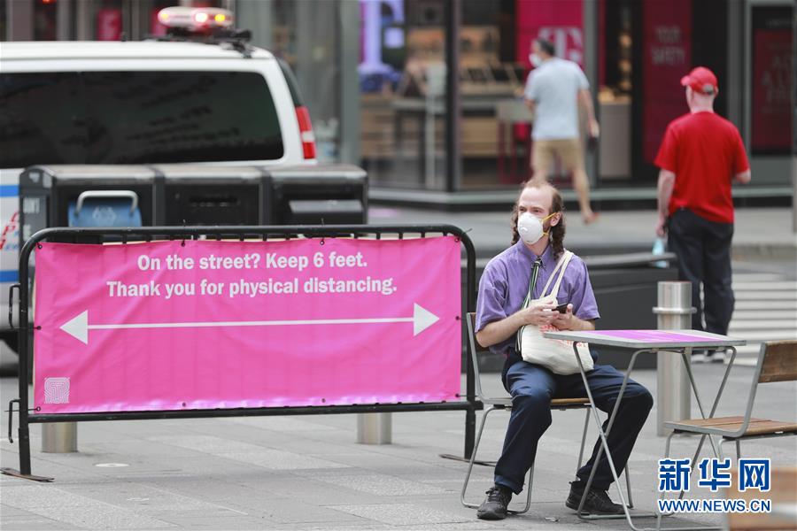 7月23日,在美国纽约时报广场,一名小贩等待顾客。美国约翰斯·霍普金斯大学23日发布的新冠疫情最新统计数据显示,美国累计确诊病例超过400万例。数据显示,截至美国东部时间23日15时34分(北京时间24日3时34分),美国累计确诊病例4007859例,累计死亡病例143846例。新华社记者王迎摄