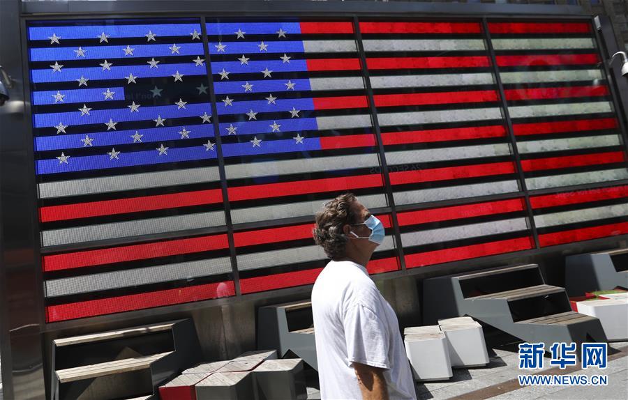 7月23日,在美国纽约时报广场,一名戴口罩的行人走在街头。美国约翰斯·霍普金斯大学23日发布的新冠疫情最新统计数据显示,美国累计确诊病例超过400万例。数据显示,截至美国东部时间23日15时34分(北京时间24日3时34分),美国累计确诊病例4007859例,累计死亡病例143846例。新华社记者王迎摄