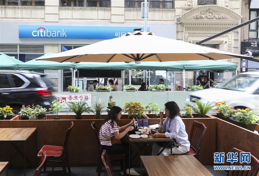 7月23日,在美国纽约,人们在户外就餐区用餐。美国约翰斯·霍普金斯大学23日发布的新冠疫情最新统计数据显示,美国累计确诊病例超过400万例。数据显示,截至美国东部时间23日15时34分(北京时间24日3时34分),美国累计确诊病例4007859例,累计死亡病例143846例。新华社记者王迎摄