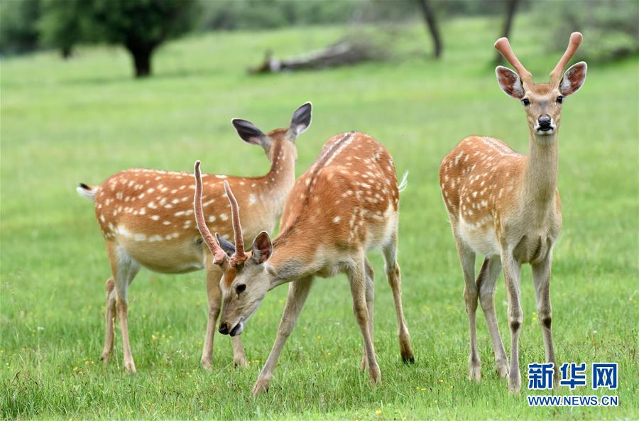 阿坝县查理乡神座村里的梅花鹿(7月5日摄)。新华社记者陈燮摄