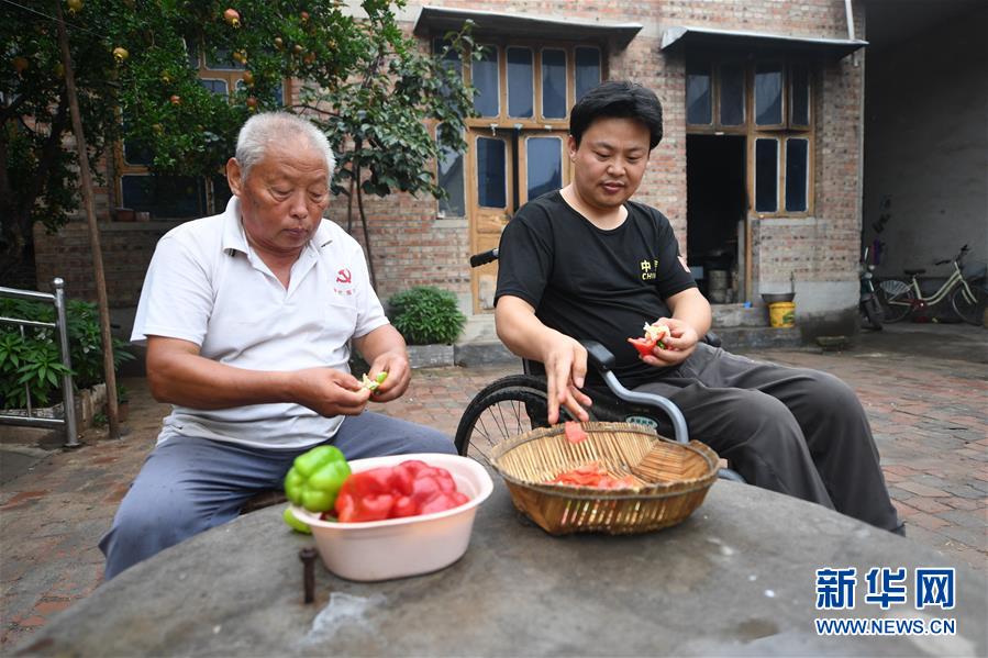 7月22日,王红彬(右)和父亲在自家院里择菜。新华社记者朱旭东摄