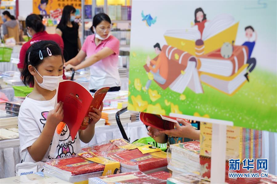 7月23日,一名小读者在书展上阅读。当日,第十届江苏书展在江苏苏州开幕,400多家出版发行单位参展,吸引众多读者选购图书。新华社记者李博摄
