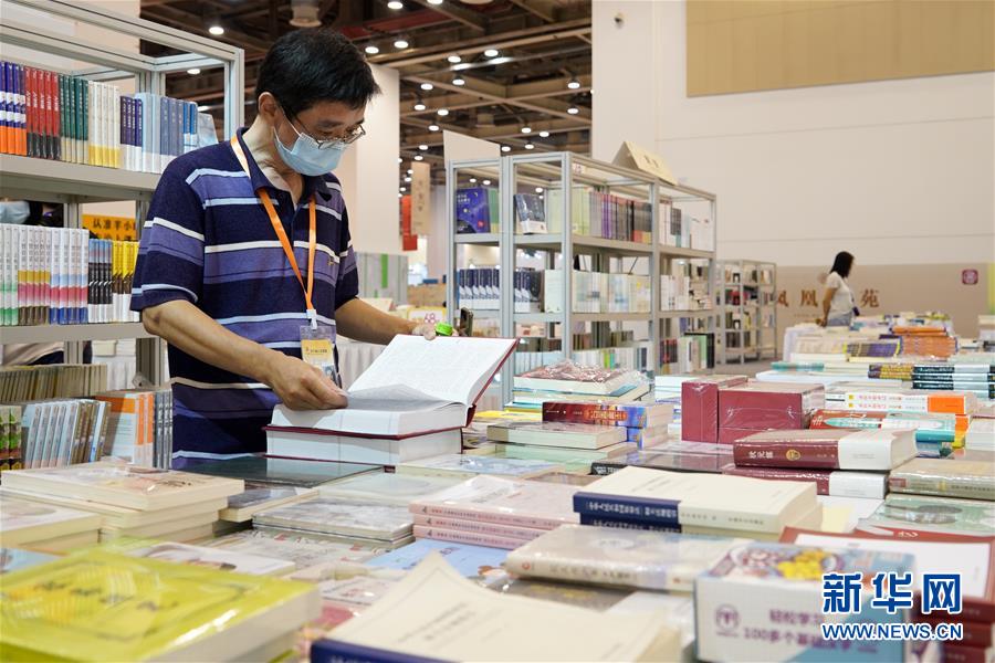 7月23日,读者在书展活动现场阅读选购图书。当日,第十届江苏书展在江苏苏州开幕,400多家出版发行单位参展,吸引众多读者选购图书。新华社记者李博摄
