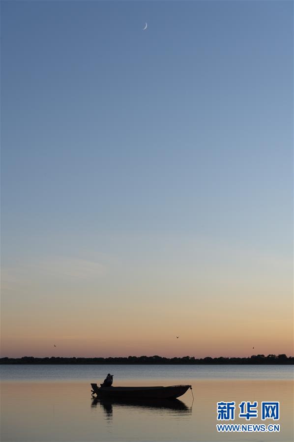 7月24日,渔民在大力加湖中捕鱼归来。大力加湖位于“中国东极”黑龙江省抚远市,面积28.5平方公里,两岸地势低平,多湿地、草原,湖内水产丰富。夏日傍晚时分,渔民捕鱼归来,美丽画卷映入眼帘。新华社记者谢剑飞摄