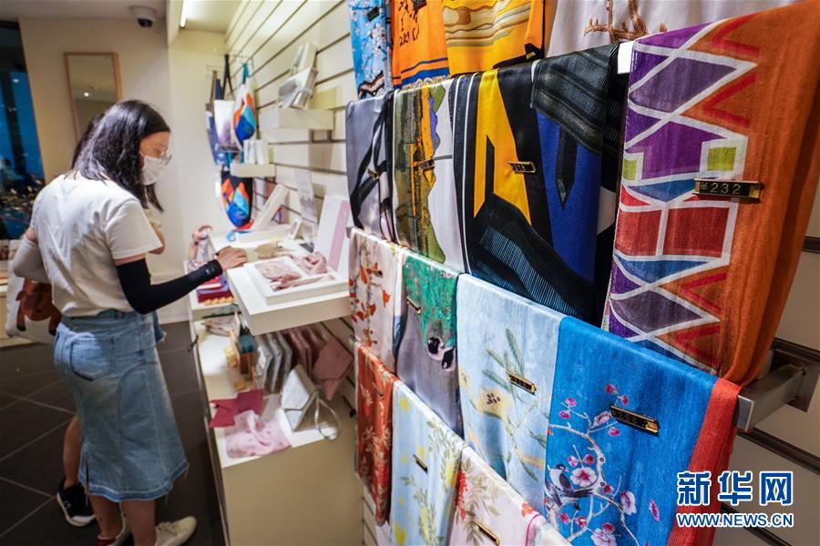 7月24日,观众在苏州博物馆内选购文创产品。近日,江苏苏州博物馆迎来众多参观者,人们在这里感受文化、学习知识,丰富暑期生活。新华社记者李博摄