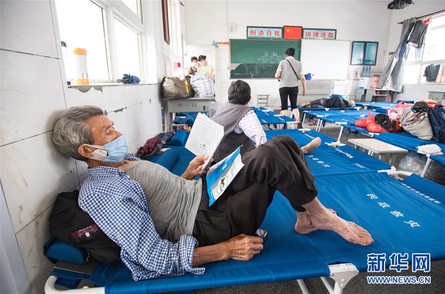 7月9日,村民戴口罩在湖北省黄梅县濯港镇十里益海小学集中安置点休息。新华社记者 肖艺九 摄