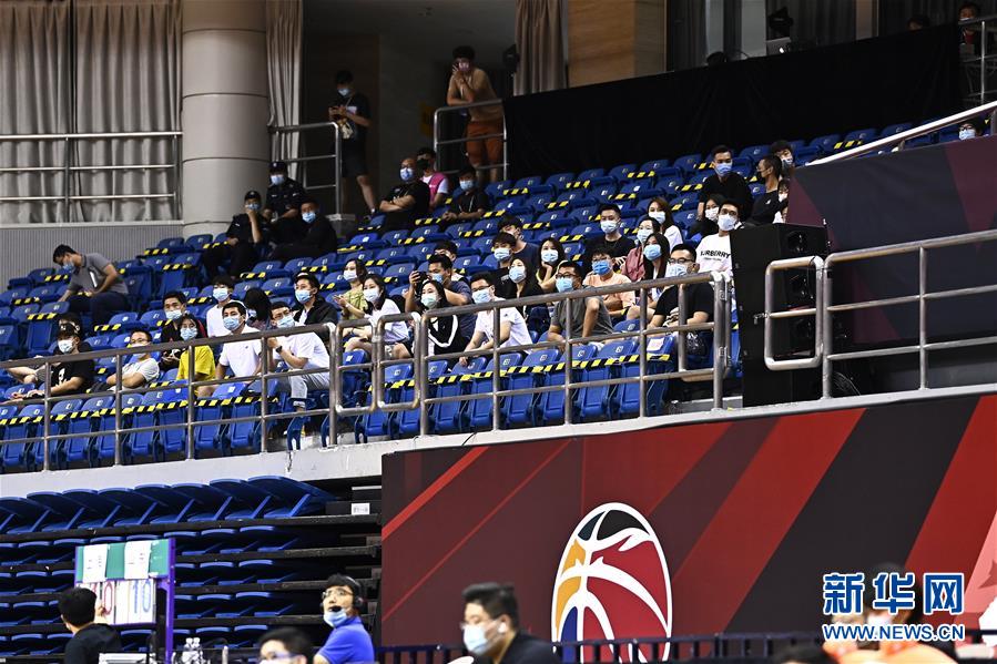 7月26日,观众观看上海久事队与山东西王队的比赛。该场比赛首次恢复观众现场观看比赛。当日,在山东青岛举行的2019-2020赛季中国男子篮球职业联赛(CBA)复赛第二阶段(崂山赛区)比赛中,医护人员、教师、公安战线人士通过官方购票平台,完成包括核酸检测在内的相关流程后进场观看了上海久事队迎战山东西王队的比赛。观赛期间,观赛者须全程佩戴口罩,对号入座,严格保持间隔一米就座。退场时,观众须按照自后向前、先两边后中间的顺序,保持“一米线”社交距离有序退场。新华社记者 郭绪雷 摄