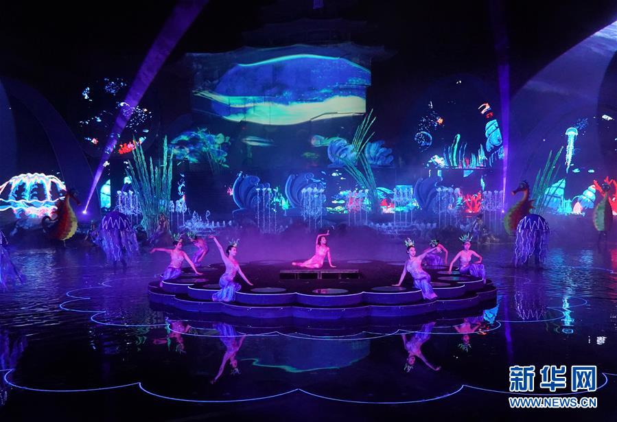 7月26日,演员在《浪淘沙·北戴河》彩排中。近日,河北省秦皇岛市北戴河文化旅游新名片——大型实景秀《浪淘沙·北戴河》进行新一轮的排练,准备接待游客。新华社记者 杨世尧 摄