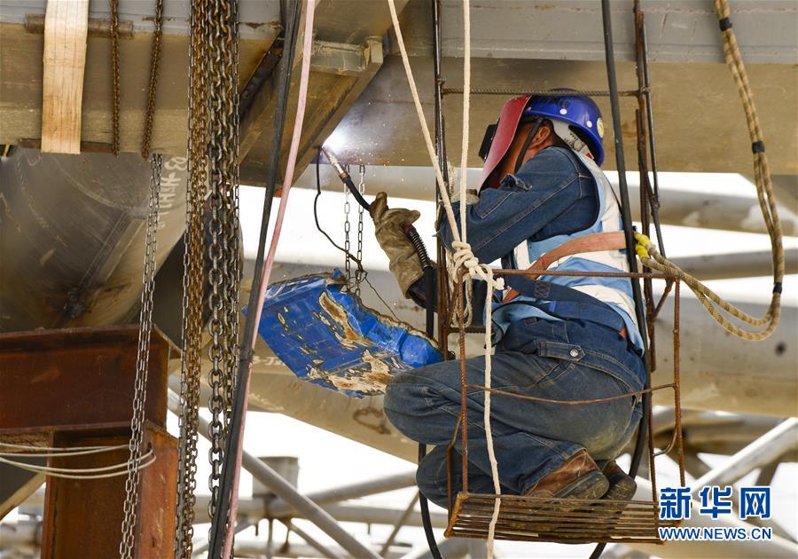 7月27日,工人在拉萨贡嘎国际机场T3航站楼的工地上作业。新华社记者 田金文 摄